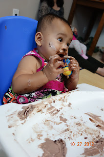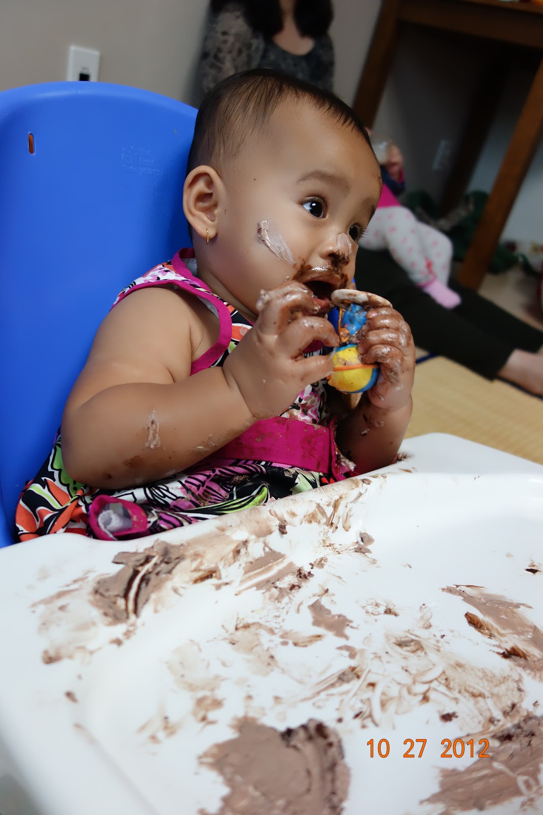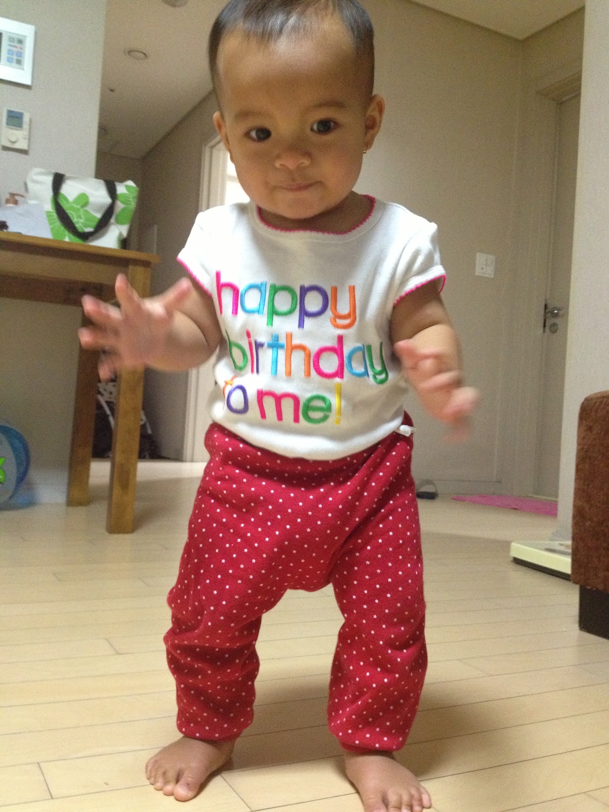 Untuk memeriahkan suasana kami memutar lagu Selamat Ulang Tahun, juga Happy Birthday, dan Saengil Chukahamninda, lagu selamat ulang tahun orang Korea. Saat semua sudah berkumpul Chila seperti ketakutan dan bingung karena biasanya di rumah hanya bertiga dan sekarang begitu ramai orang datang. Chila juga senang karena menerima banyak kado dari om dan tante serta teman teman. Biasanya bayi baru diperbolehkan mengonsumsi gula garam di atas satu tahun. Sebagai simbolnya Chila saya suguhkan kue ulang tahun Pororo untuk ia santap. Wajah Chila belepotan cokelat. Setelah itu Chila ganti baju memakai hanbok yang biasa dipakai bayi-bayi Korea dalam perayaan ulang tahun pertamanya atau disebut doljanji.