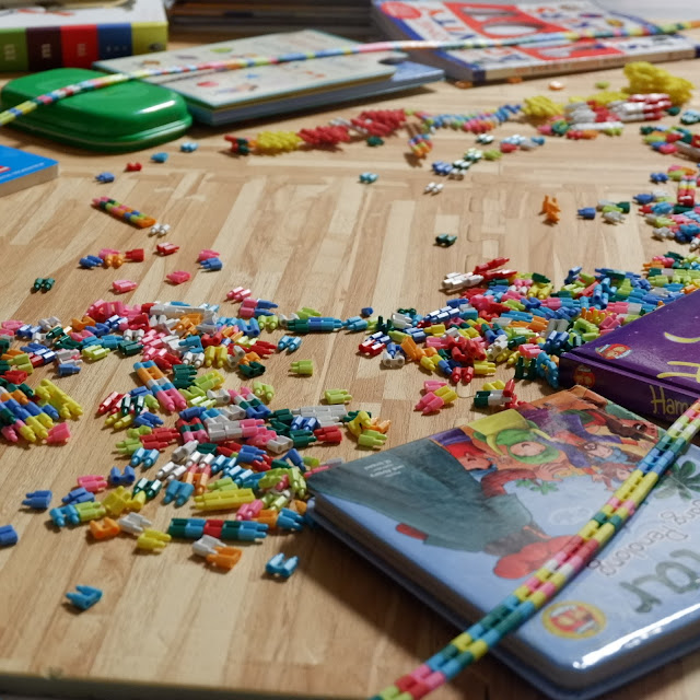 Menurut saya, mainan lego roket ini masuk kategori mainan bongkar-pasang untuk membentuk pola-pola dan bentuk sesuai dengan imajinasi. Karena harus dibongkar pasang dan harus punya imajinasi dalam memainkannya, maka otak anak dirangsang agar kreatif untuk dapat membuat sesuatu dari lego roket. Adapun setiap keping lego roket ini hanya memiliki dua lubang tempat sambungan untuk dipasangkan dengan keping lainnya.
